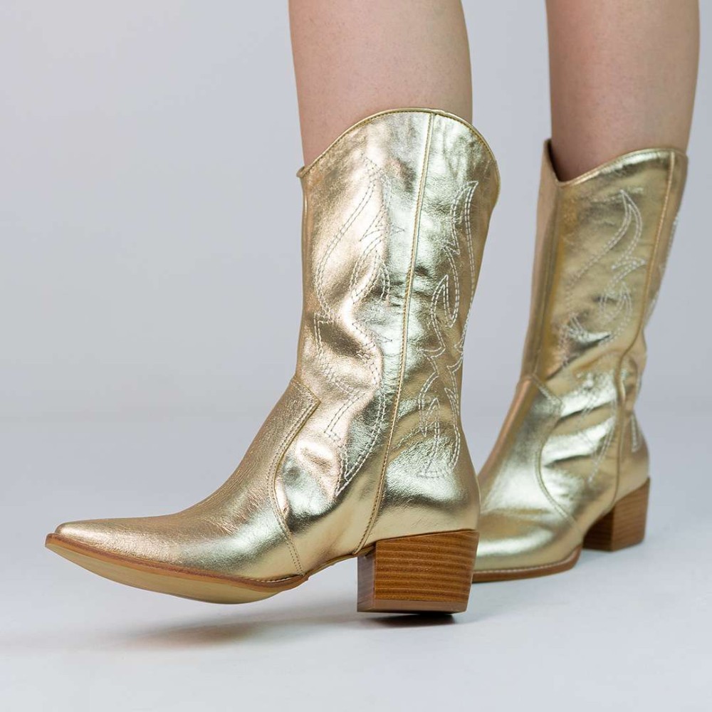 Sua cor metalizada adiciona um toque de brilho e personalidade a cada passo que você dá. Os detalhes em bordados delicados no cano destacam-se, adicionando um toque artesanal e sofisticado.