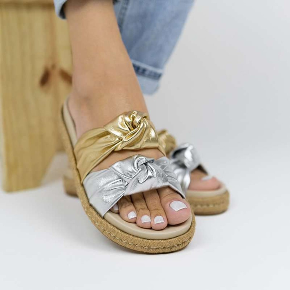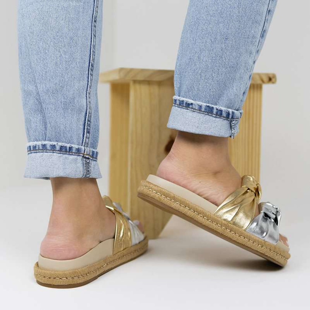 Descubra a combinação perfeita de moda e comodidade com a Birken Jolie. Suas duas tiras com nó, cores dourado e prata, e solado de corda garantem um estilo moderno e conforto incomparável!