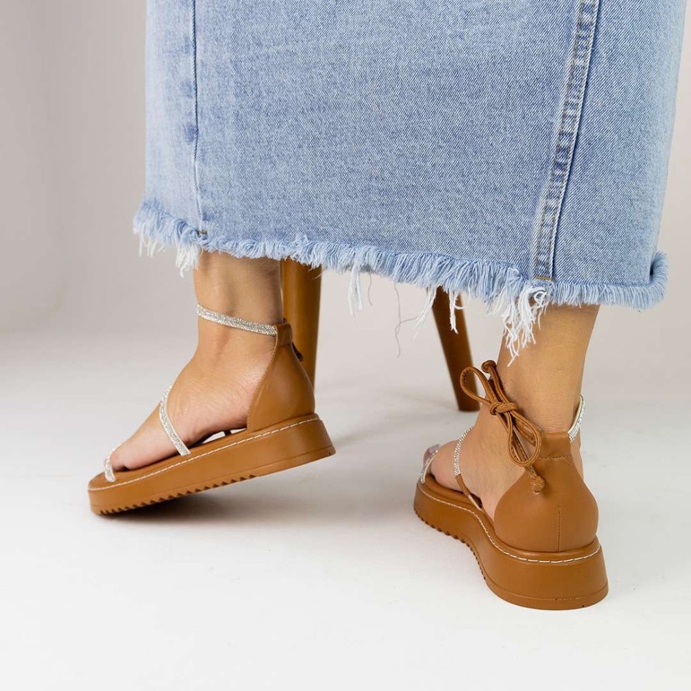 Possui três tiras, todas detalhadas com muito brilho, adicionando um toque de elegância ao calçado.