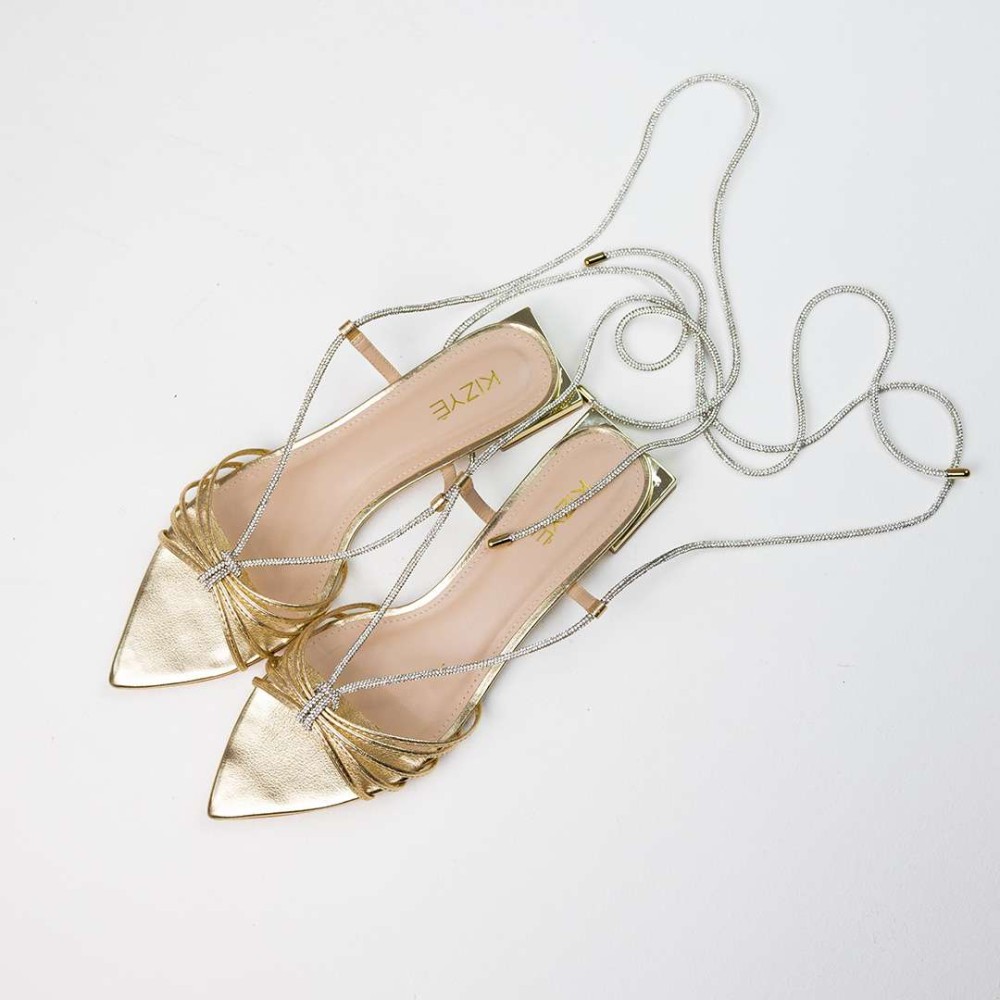 Nos dedinhos o detalhe das cordas em dourado traz ainda mais sofisticação, luxo e requinte, tornando-a uma escolha impecável para eventos especiais ou para elevar o cotidiano com um toque super charmoso.