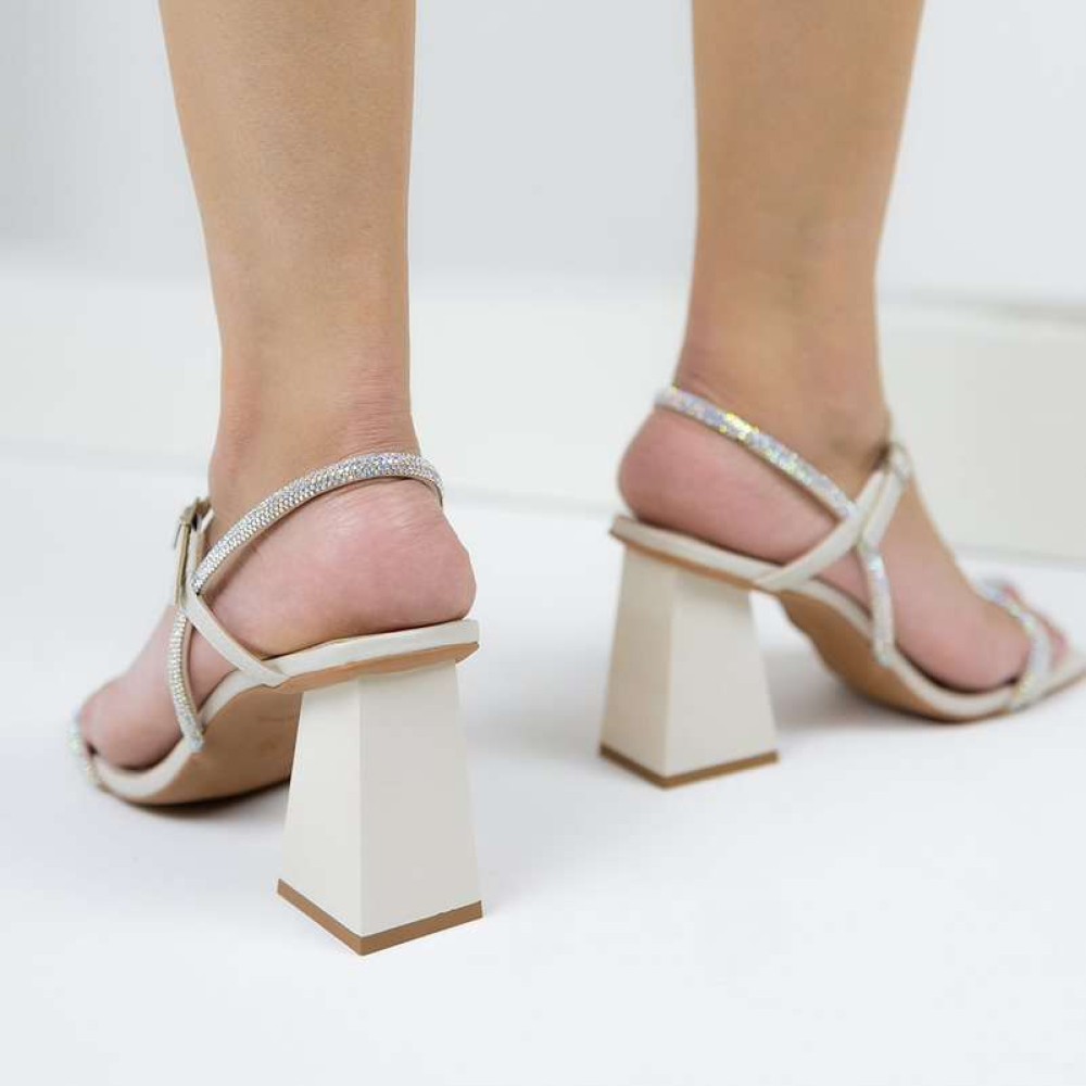 Explore a sofisticação inigualável da sandália Maíra. Seu design exclusivo apresenta um salto geométrico elegante, tiras deslumbrantes de strass furtacor e detalhes brilhantes no calcanhar. Com uma altura de salto de 9 cm, esta sandália combina conforto e estilo. Eleve sua experiência de moda com a Maíra. Adquira agora e transforme seus passos em uma expressão de elegância.