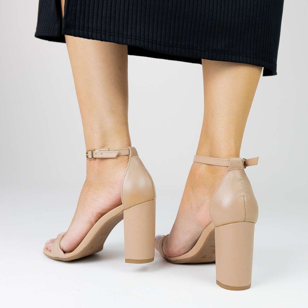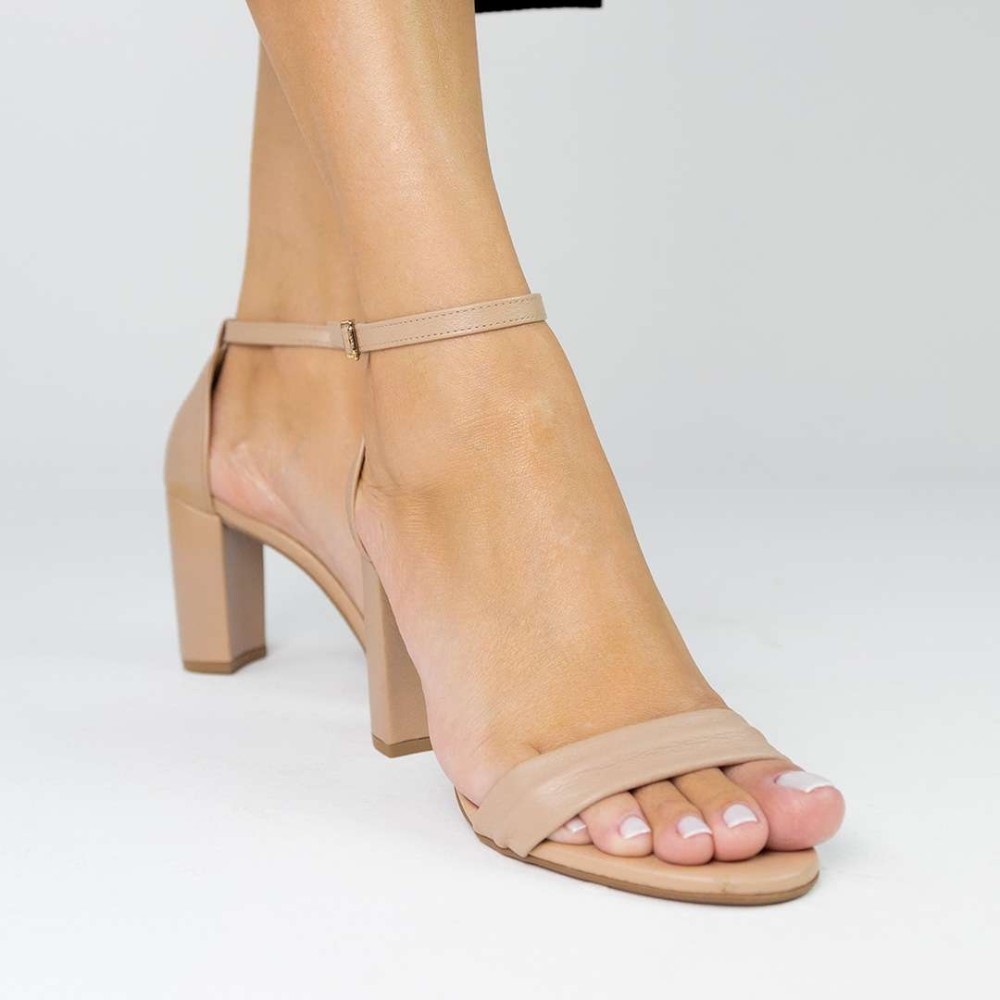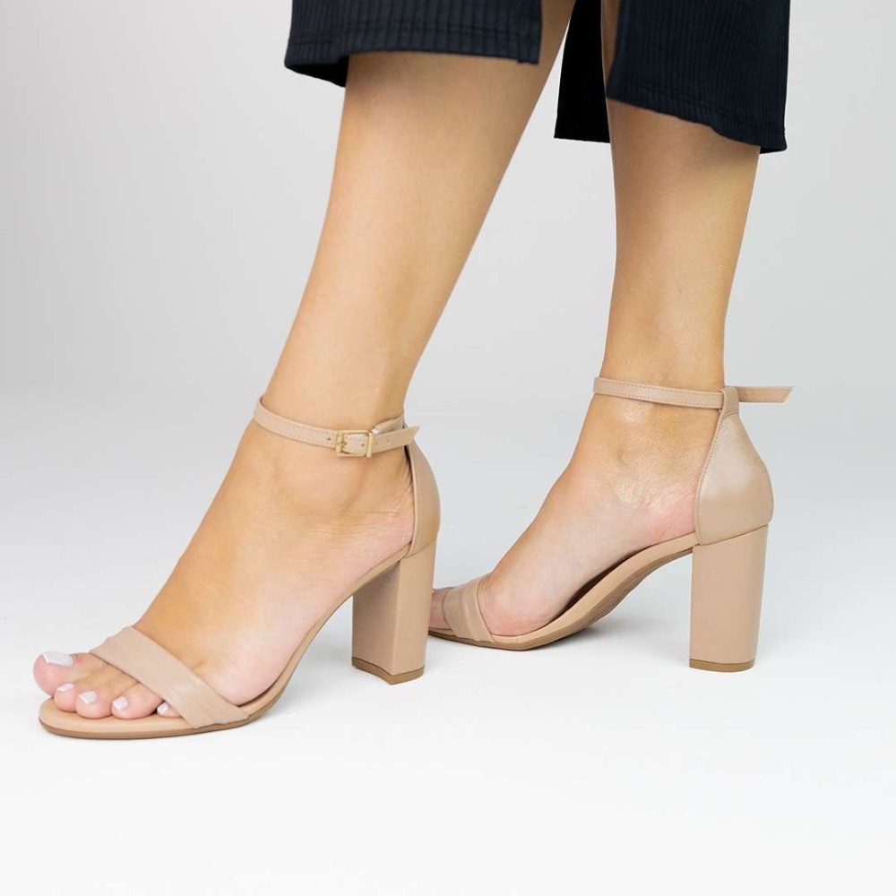 O salto grosso e o calcanhar fechado trazem estabilidade e conforto, tornando a sandália ideal para ser usada em qualquer lugar, até mesmo em um casamento ao ar livre.