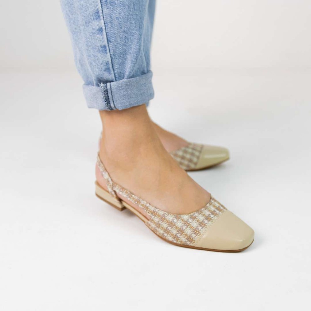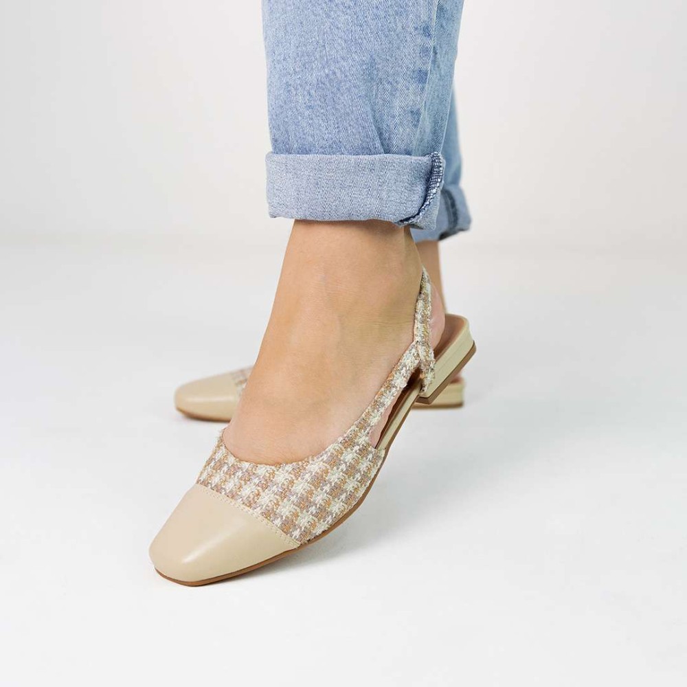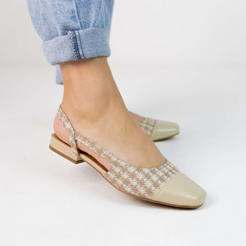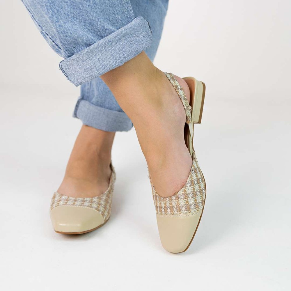 A Sapatilha Slingback Catarina bicolor ou em pied-de-poule, é uma peça-chave da moda atual.