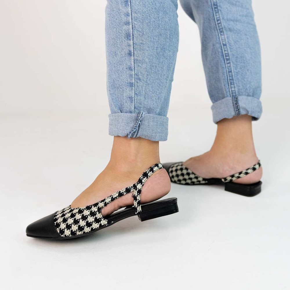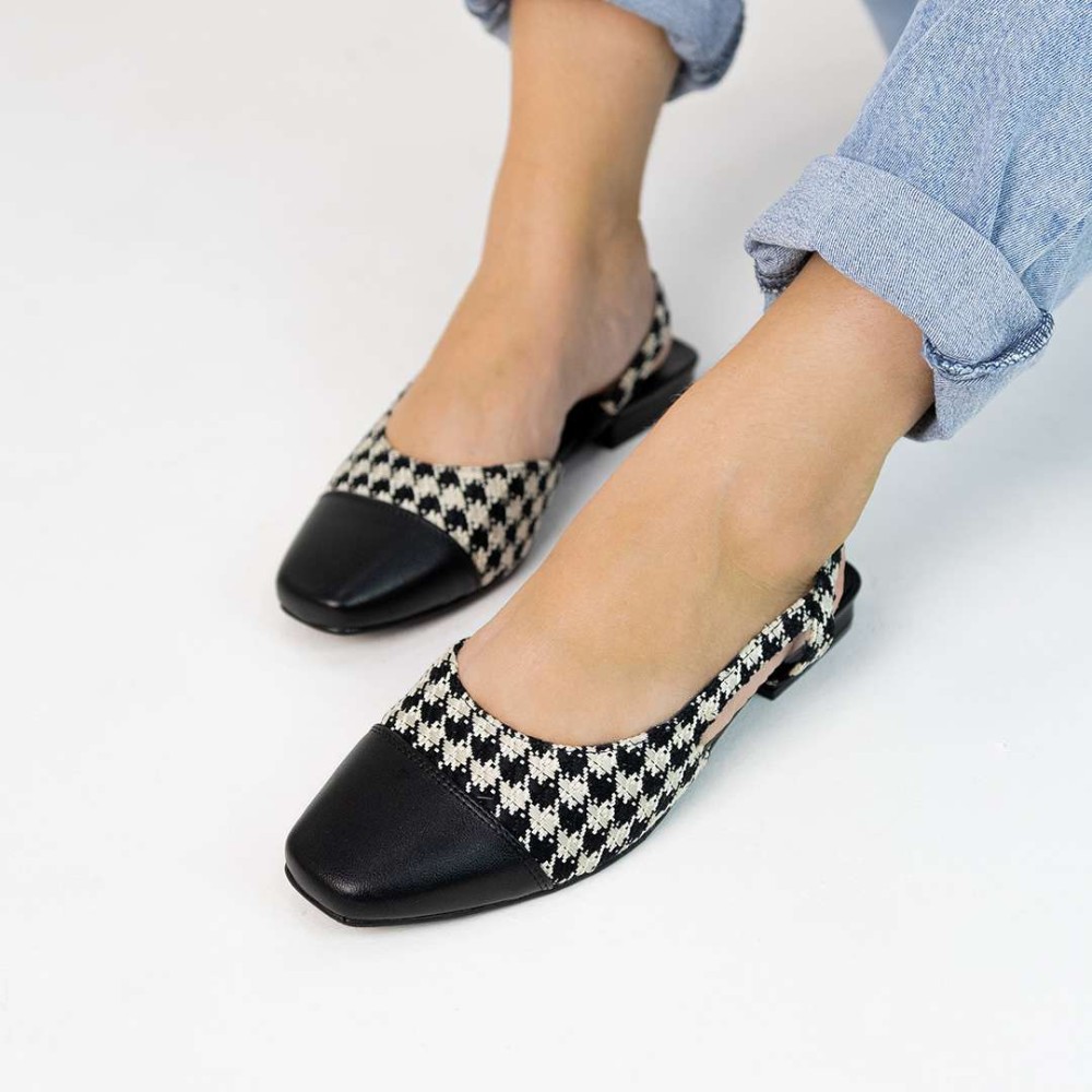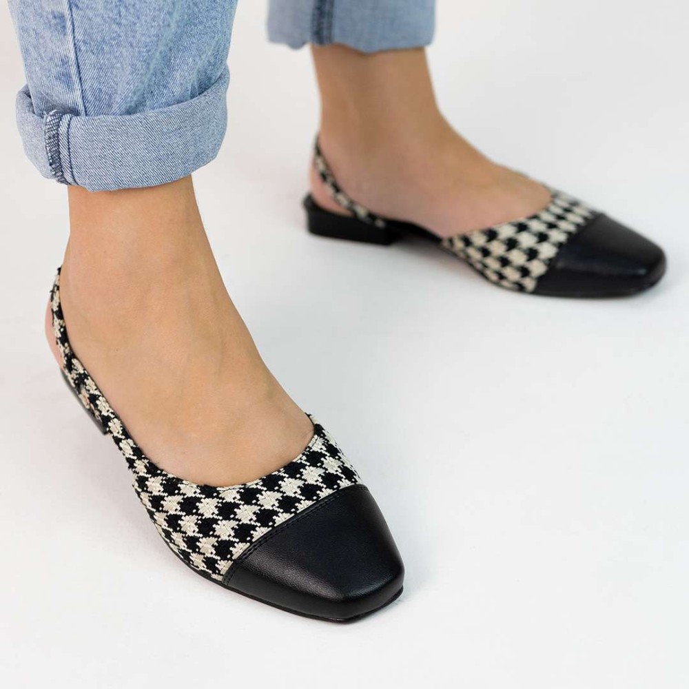 Sapatilha Slingback Catarina bicolor ou em pied-de-poule, é uma peça-chave da moda atual.