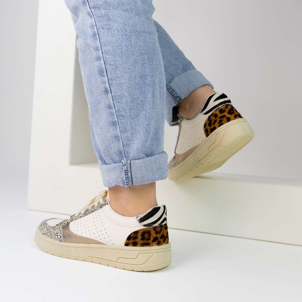 Em couro cor creme, com um charme extra do mix de estampas animal print, ele é a escolha perfeita para elevar seu estilo.