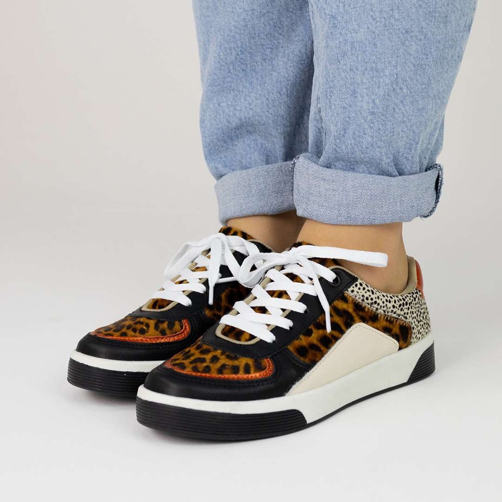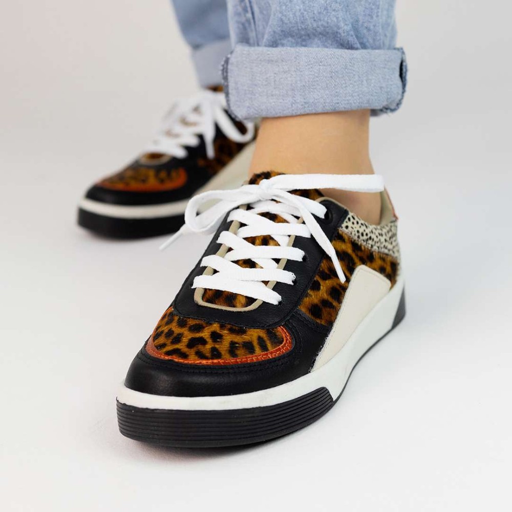 Uma verdadeira obra-prima da moda, com uma mistura harmoniosa de texturas: o animal print arrojado em pêlo, o toque glamouroso do dourado e o atemporal do couro, tudo em uma só peça.