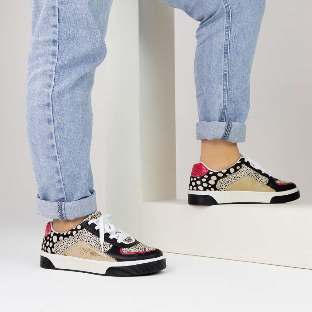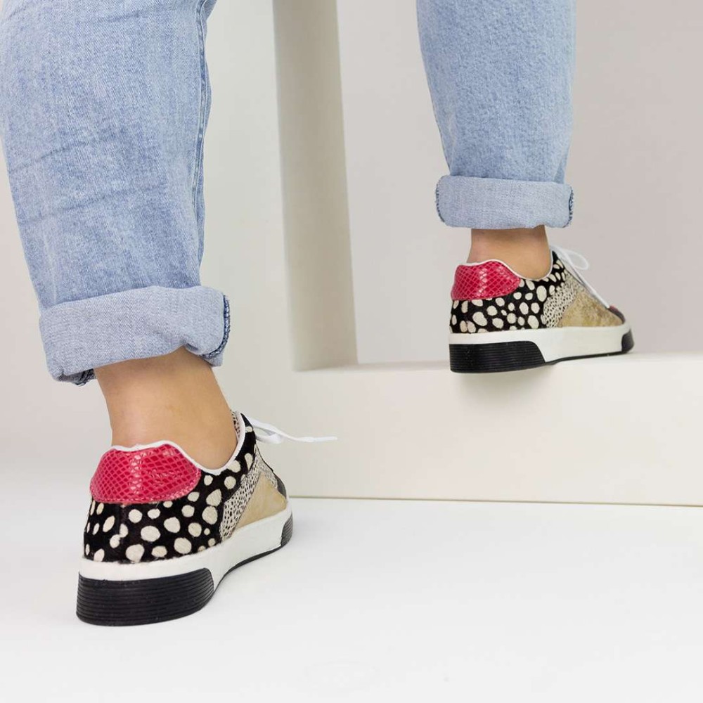 Uma verdadeira obra-prima da moda, com uma mistura harmoniosa de texturas: o animal print arrojado em pêlo, o toque glamouroso do dourado e o atemporal do couro, tudo em uma só peça.