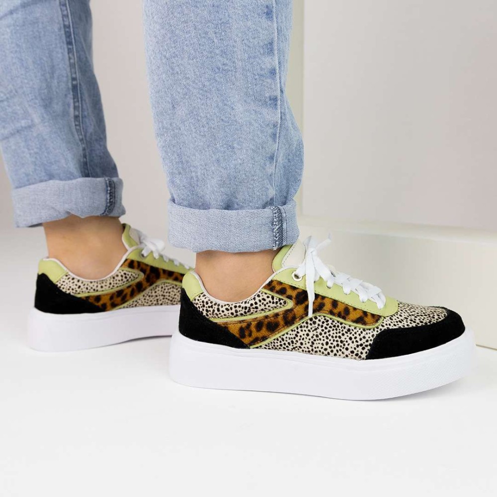 Com seu mix de estampas animal print em textura de pêlo e detalhes em verde, ele é uma combinação perfeita de elegância e ousadia.